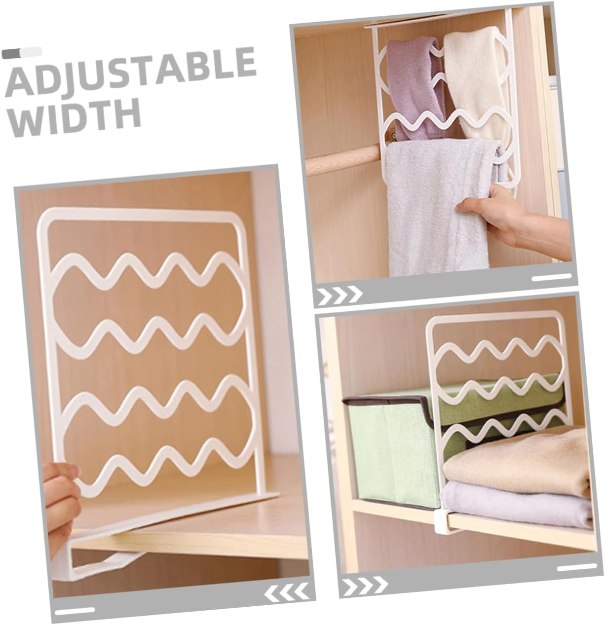 Package Include 10 x closet dividers Features -Versatile fit: adjustable width makes these dividers compatible with various wardrobe sizes, providing a versatile storage solution shelf divider -Space optimization: multilayer dividers maximize the use of wardrobe space, allowing you to store more items neatly and efficiently cabinet dividers for shelves -Easy installation: the nodrill design allows for quick and easy installation, saving you time and effort while keeping your wardrobe intact purse divider -Modern aesthetic: the sleek and modern design complements any wardrobe style, adding a touch of elegance to your closet organization closet shelf divider -Material:PP shelf divider for closet -Product Info:Storage partition - construction: made with pp materials, these dividers are built to last, ensuring longterm use and reliability plastic closet shelf separator -Color:White shelf organizers for closet -Size:57.00X51.00X2.30cm/22.40X20.04X0.90in closet shelvingGoods Descriptioncloset organizer Designed to fit most standard closet shelves, these dividers allow you to create custom storage solutions without the need for tools or hardware.cabinet divider Transform your closet with our versatile shelf dividers.closet dividers for shelves Use them to separate sweaters, handbags, and other items, ensuring everything has its own designated space and is easy to find when you need it