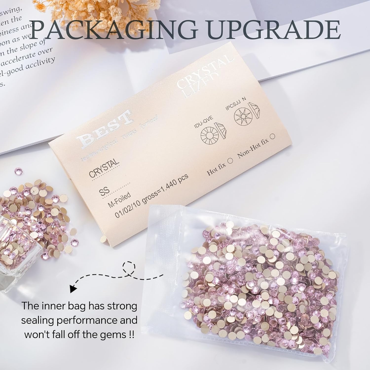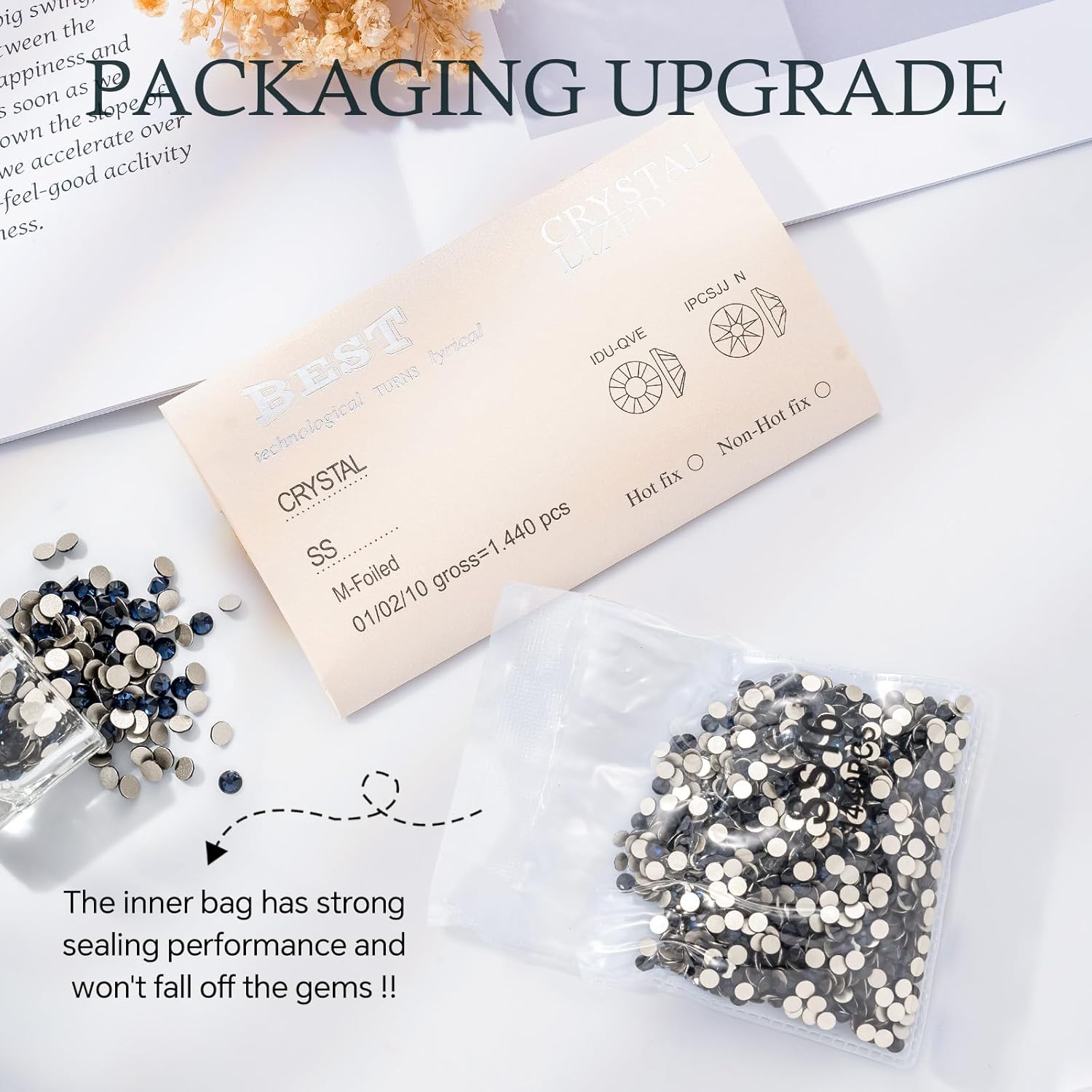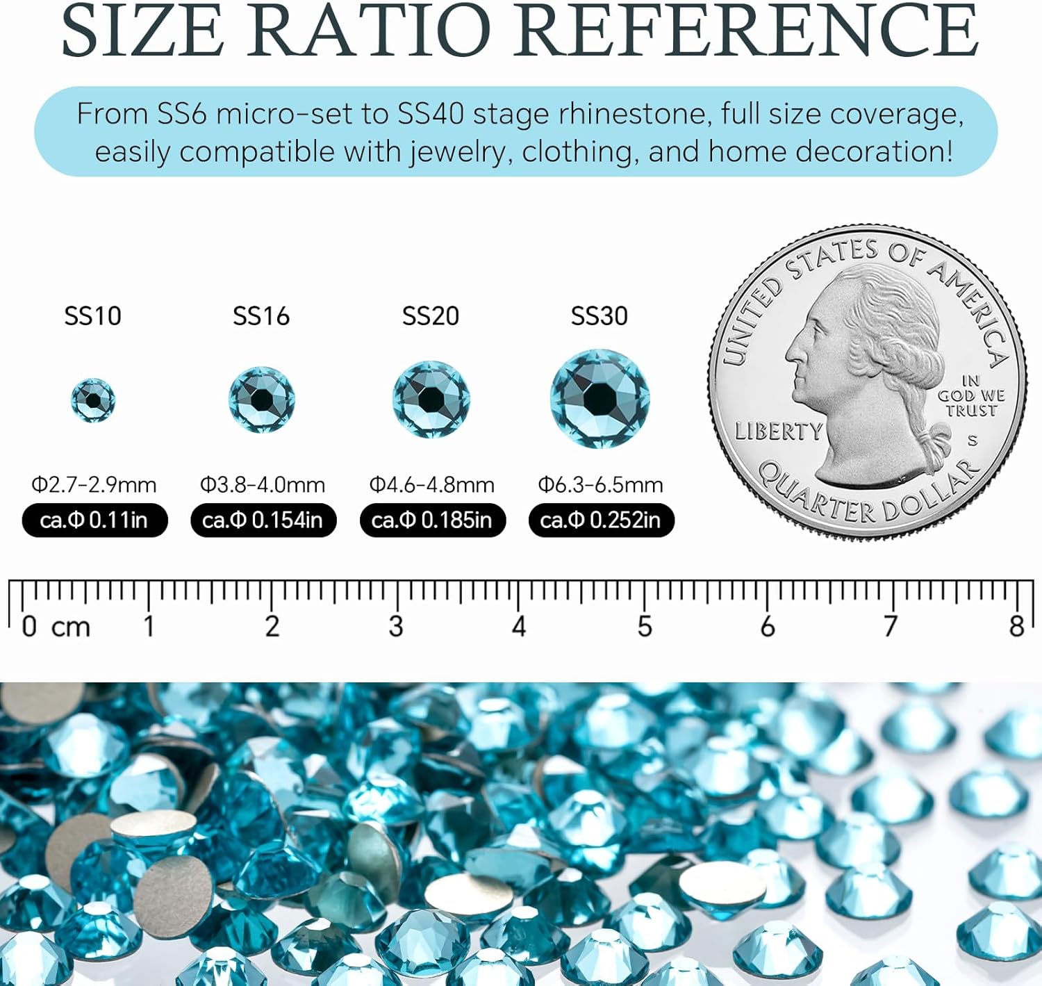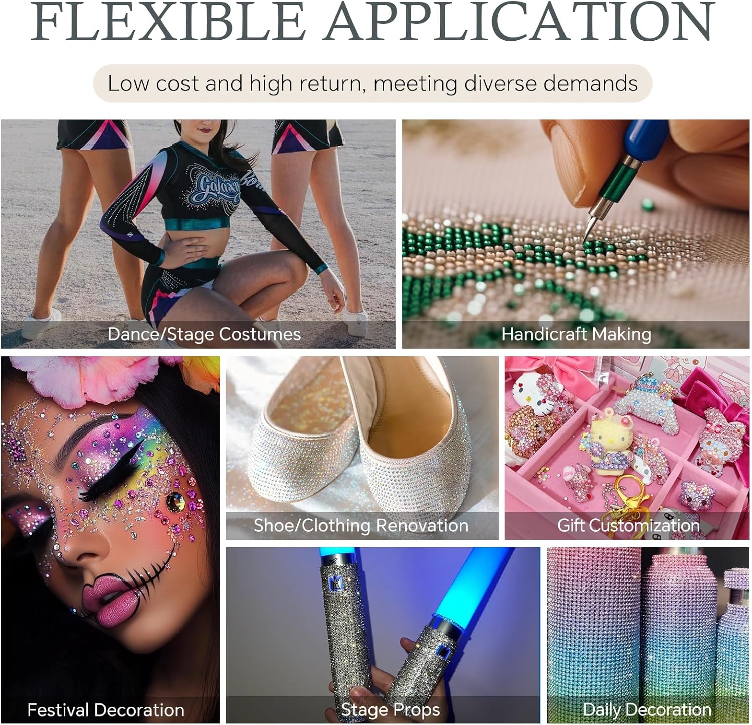Material: Glass/Artificial Crystal, Flat Back Round, High-precision cross-section, multi-sided cutting, high brightness, high Sparkly. These thermal repair rhinestone bottoms are heat activated glue that melts and sticks when heated. The Clear runs through the entire crystal, and the crystal does not fade