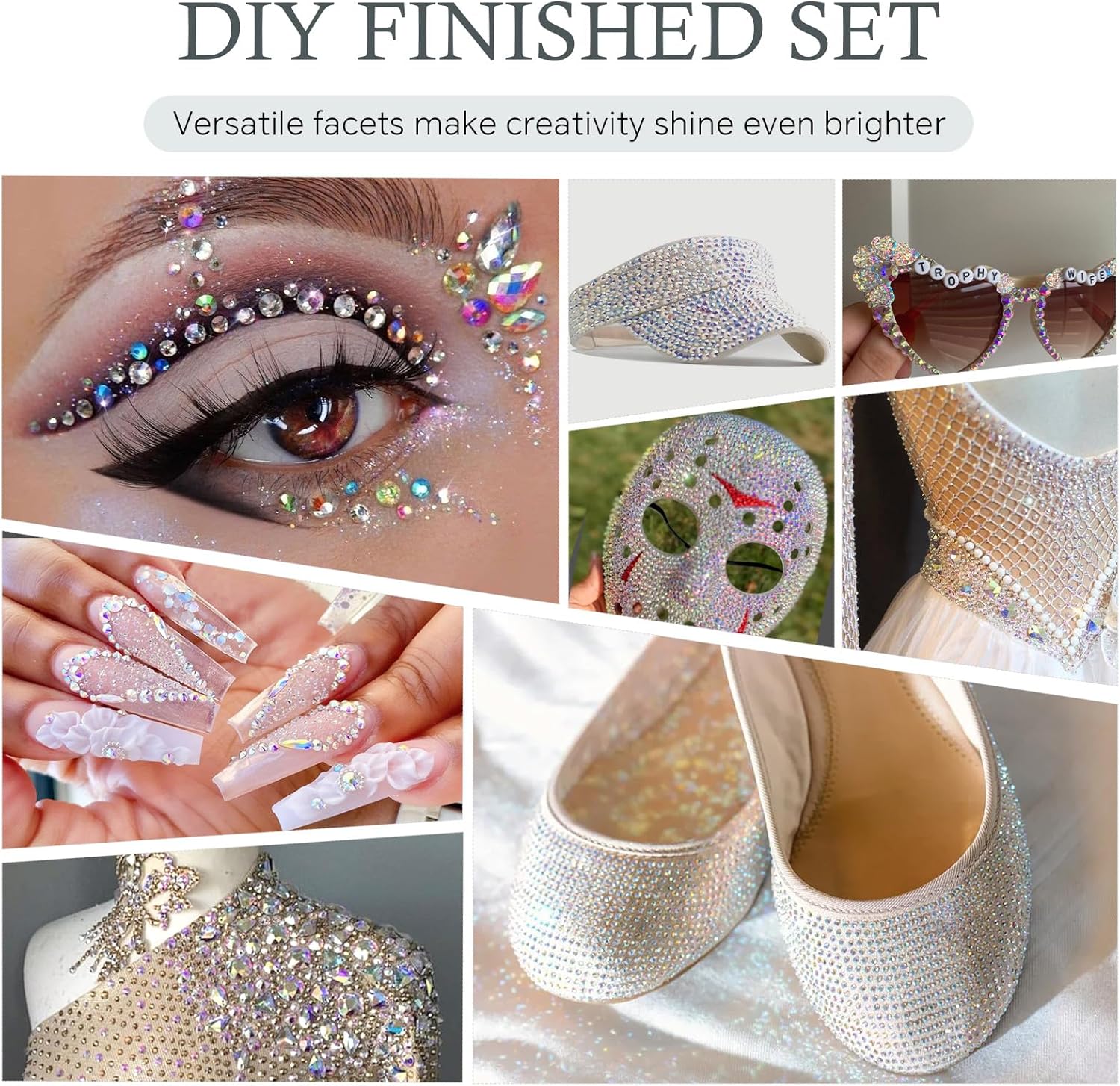 Use tweezers and Picking Pen gem picker to pick rhinestones, There is no glue on the bottom, additional nail gel is required, or other professional glue for makeup or nails; Can use E6000/E7000 super glue to fix on crafts, art decoration; not hotfix