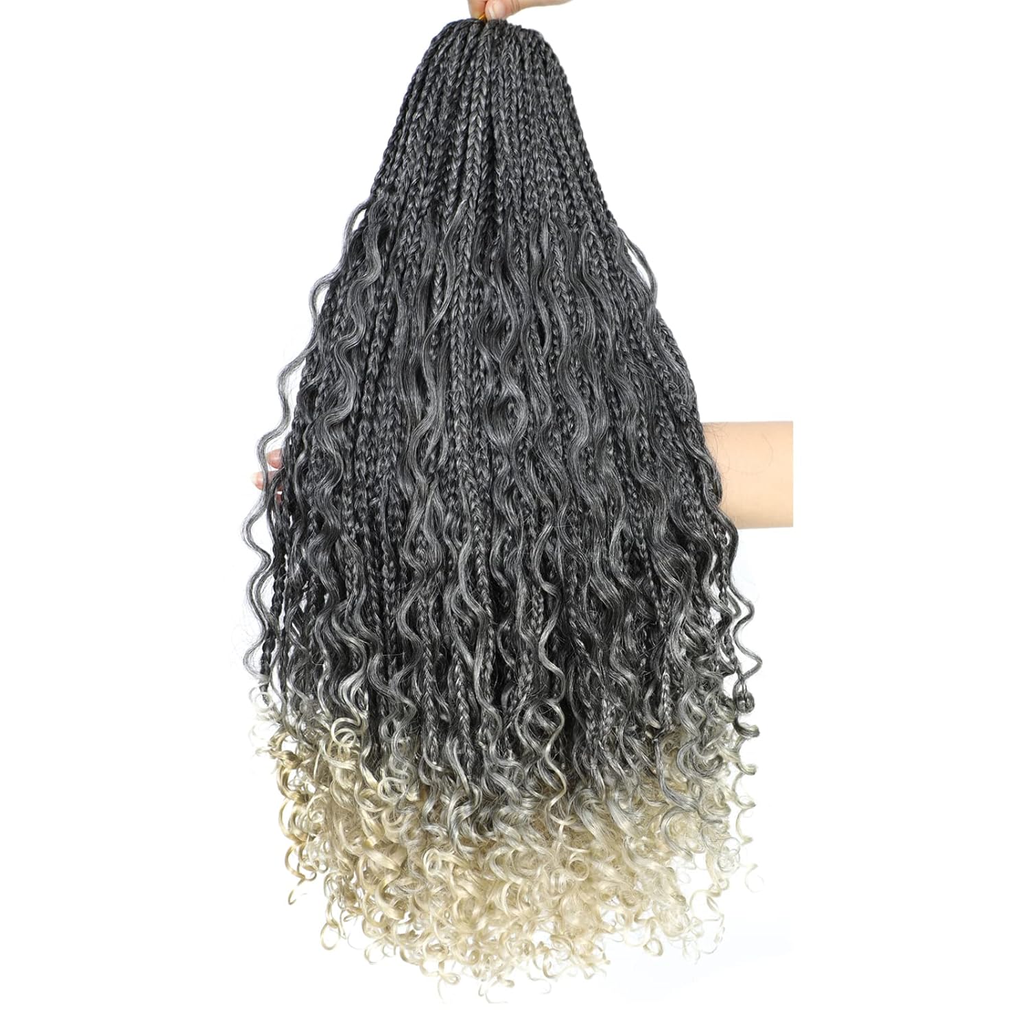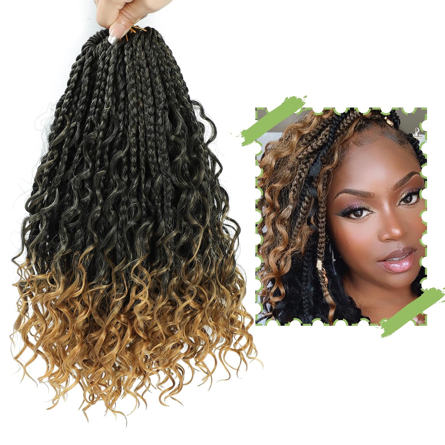 【Crochet braids Material】--Box braid Crochet hair Made with high quality flame-retardant low temperature synthetic fiber. Natural looking, No Smell, No Tangle, Box Braid Crochet hair Curly Ends is every beautiful.