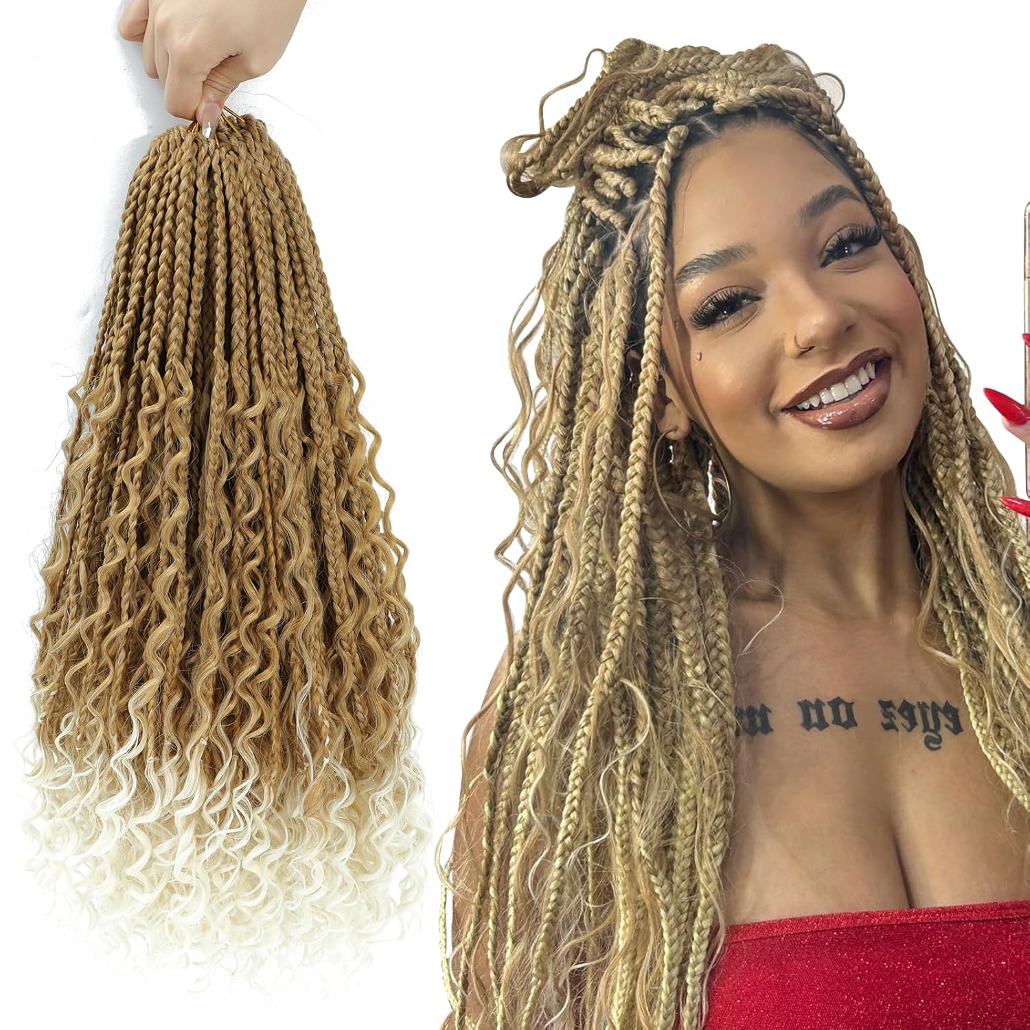 【Crochet Hair for black women human hair Pros】: Goddess box braids Crochet hair crochet braids with curly ends ,Braiding Hair Extensions Braids Perfect for everyday wear and gift selection, work, dating, Christmas, Thanksgiving, role playing.