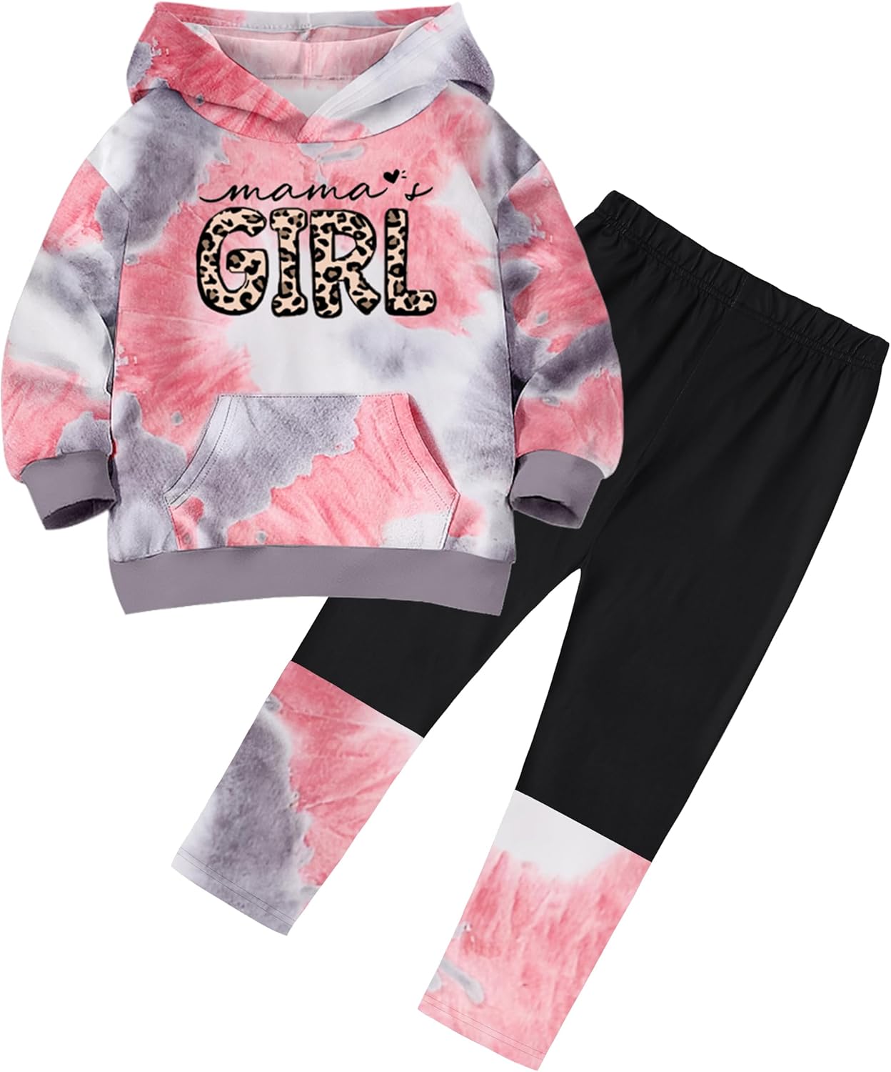 ✨【Fashion Design】Tie-dye is the design highlight, the long-sleeved hoodie is printed with leopard print letters, and it is matched with the same series of tie-dye trousers, which is smart and cute; the wrist is closed, which is stable and windproof and warm.