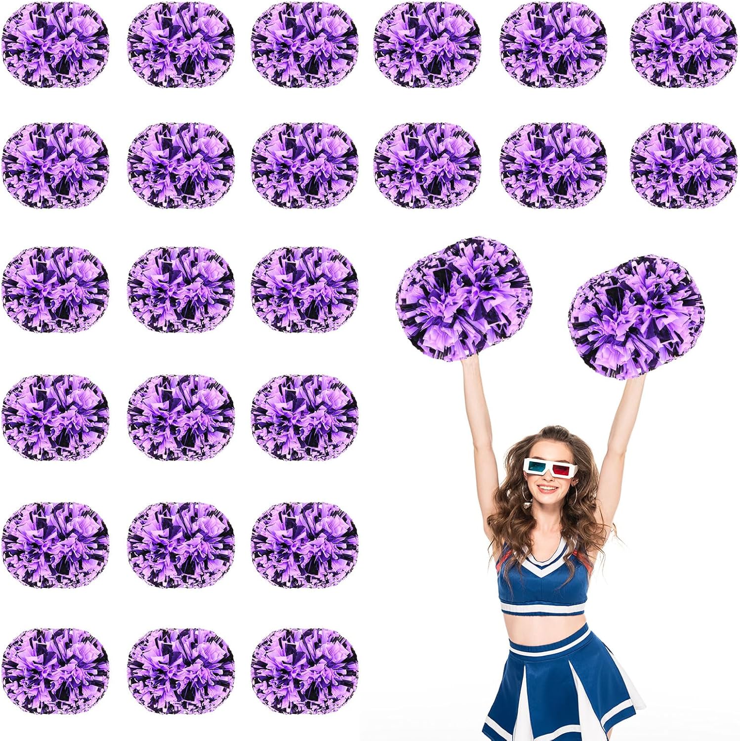 Product descriptionConvenient use: The cheer plastic pompoms bulk have rubber bands on both sides to hold them in place, to use, just remove the rubber bands and shake them a few times to puff them up. Specifications: Material: metal foil, plastic Size: 30 cm/ 11.8 inches