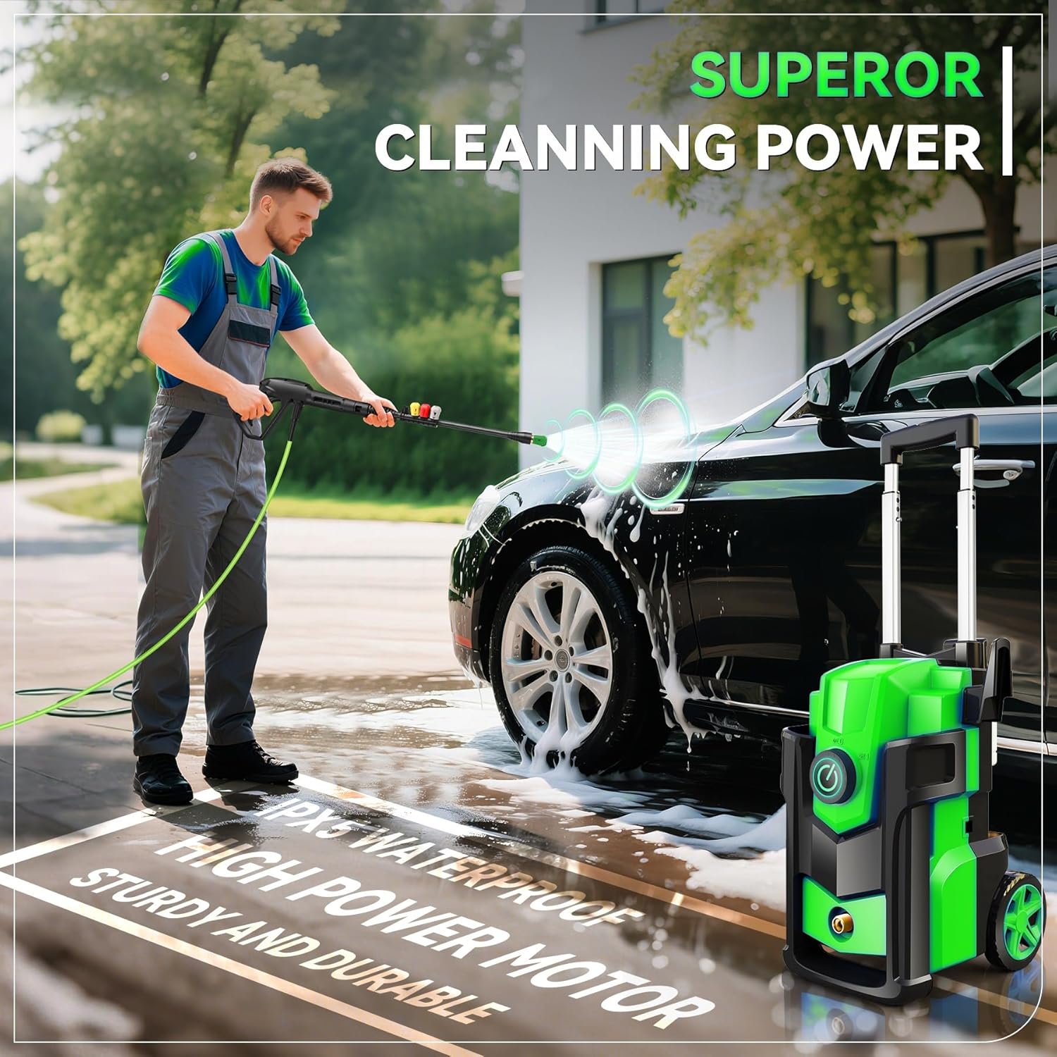 Pressure Cleaner Power Cleaner with 4 Nozzles,Foam Cannon,33FT Hose and 500ml Soap Bottle (Light Green)
