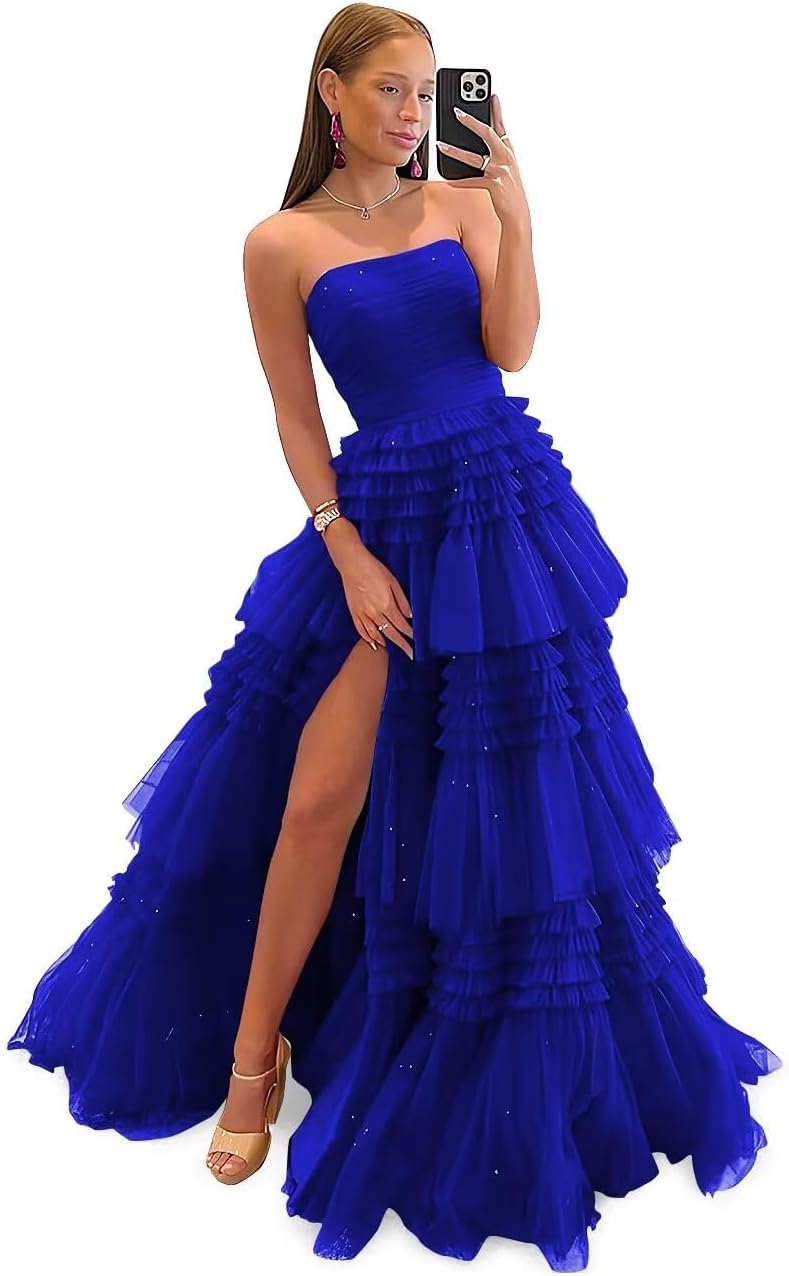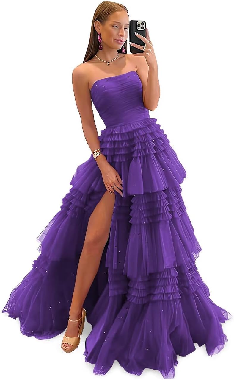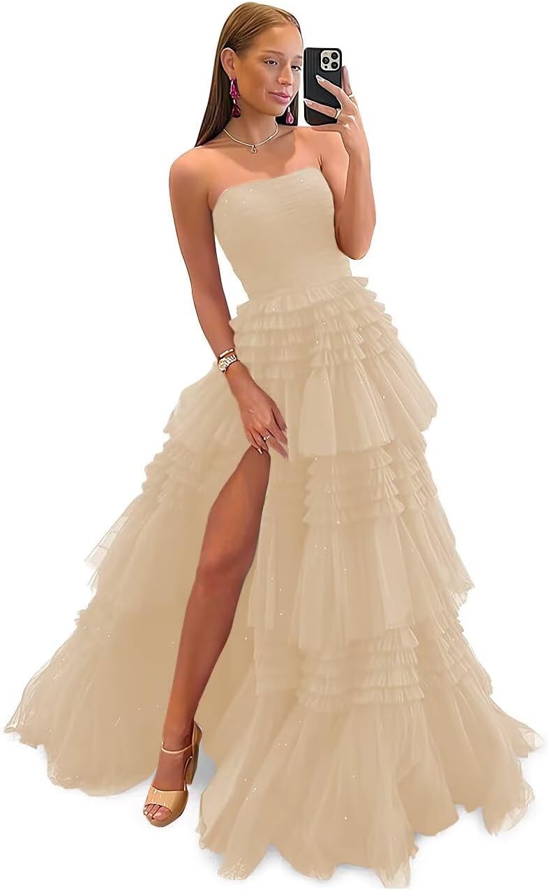 | Material Type | sparkly tiered tulle prom gowns with slit |