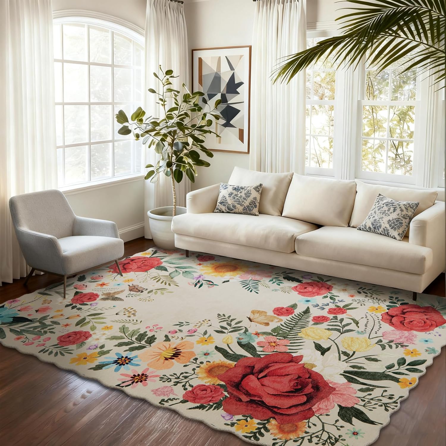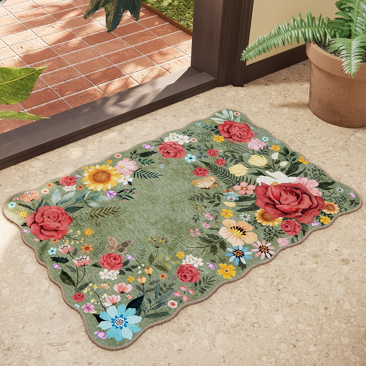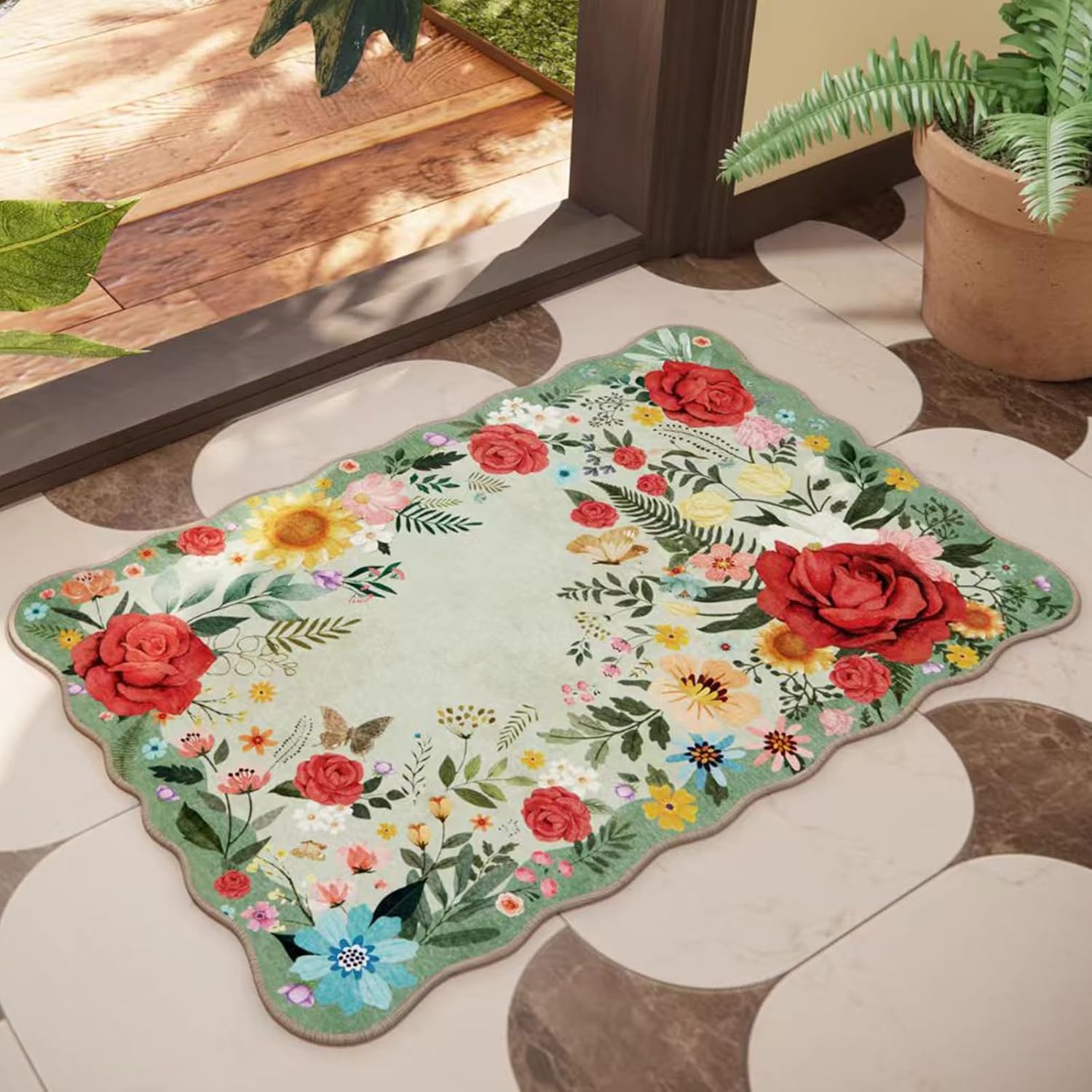 • ★【ULTRA SOFT WELL-DESIGNED】This floral rug adds a vibrant touch to your living room with its beautiful colors and subtle pattern that complements your furniture and decor. The ultra-thin design was easily placed under furniture without creating a tripping hazard.This washable runner rug is perfect for entryways, laundry, nursery, hallways, kitchen, bedside, kids room, dining room, bedroom, living room combining aesthetic appeal with ease of care.
