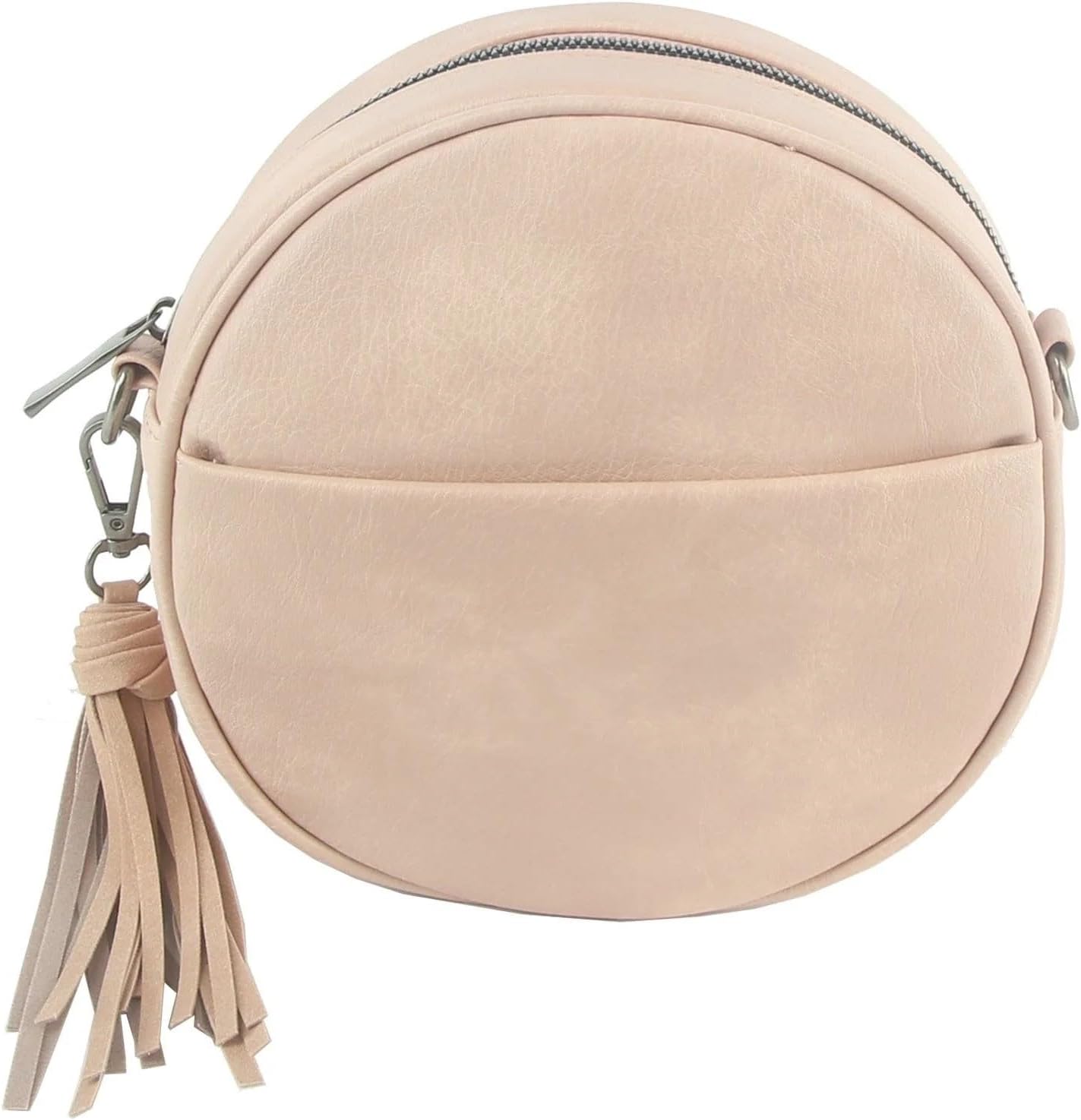 Compact Round Shape: This trendy circular crossbody bag offers a unique silhouette that blends fashion with function.High-Quality Vegan Leather: Crafted from premium cruelty-free material that’s both durable and soft to the touch.Charming Tassel Accent: Adds a playful, elegant touch while keeping your look effortlessly chic.Functional and Organized: Designed with interior pockets and an exterior zip pocket for secure storage of daily essentials.Versatile Crossbody Style: Adjustable strap provides comfortable wear as a shoulder, sling, or crossbody bag for all occasions.