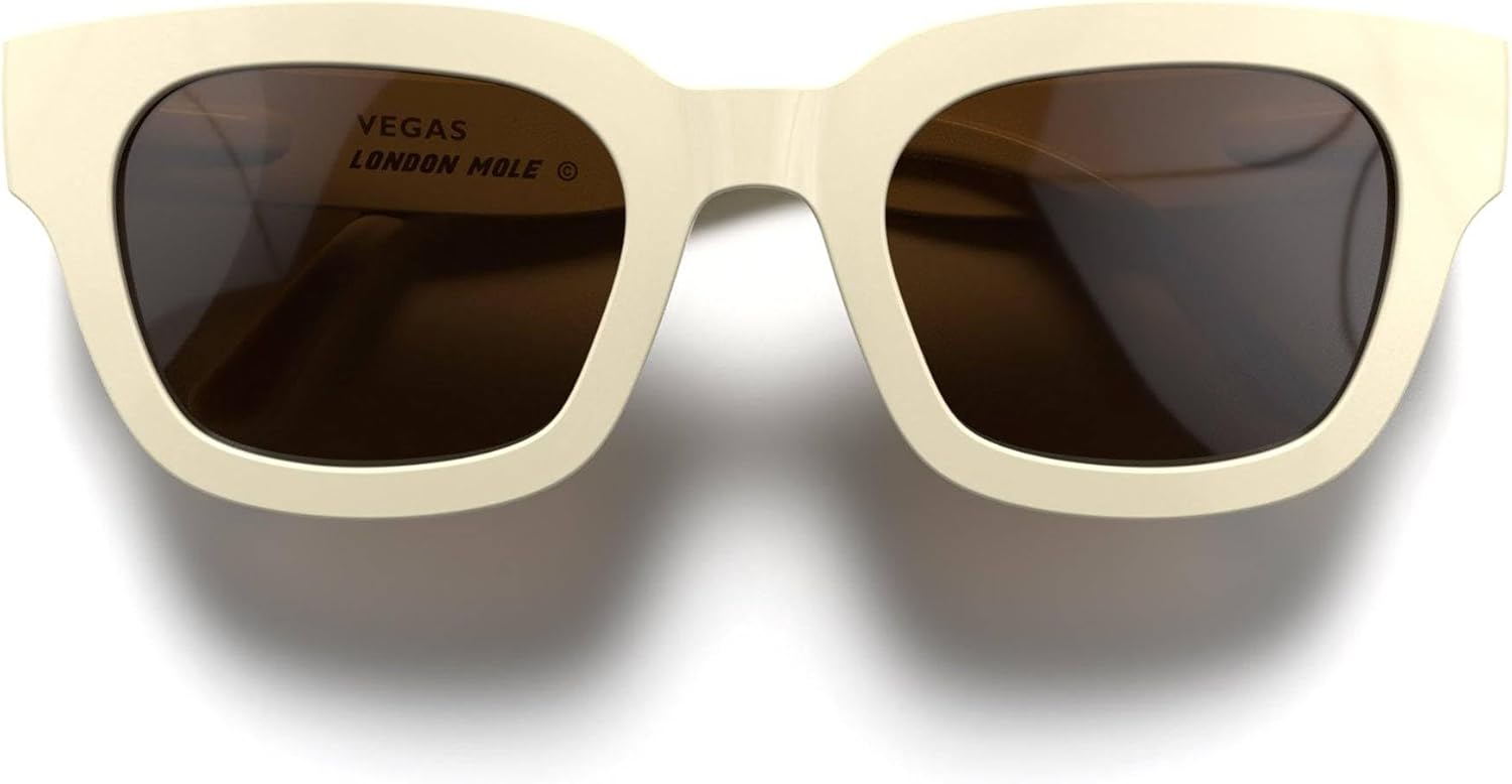 Designed and made exclusively by London Mole. Oversized iconic glasses with a sleek frame, offering a bold classic square style. Great quality, excellent value, durable and comfortable. Polycarbonate frame, polycarbonate lens with UV400 protection, sprung hinges. Frame width 150mm | Lens size 40 x 51 mm | Bridge gap size 16 mm | Temple size 146 mm
