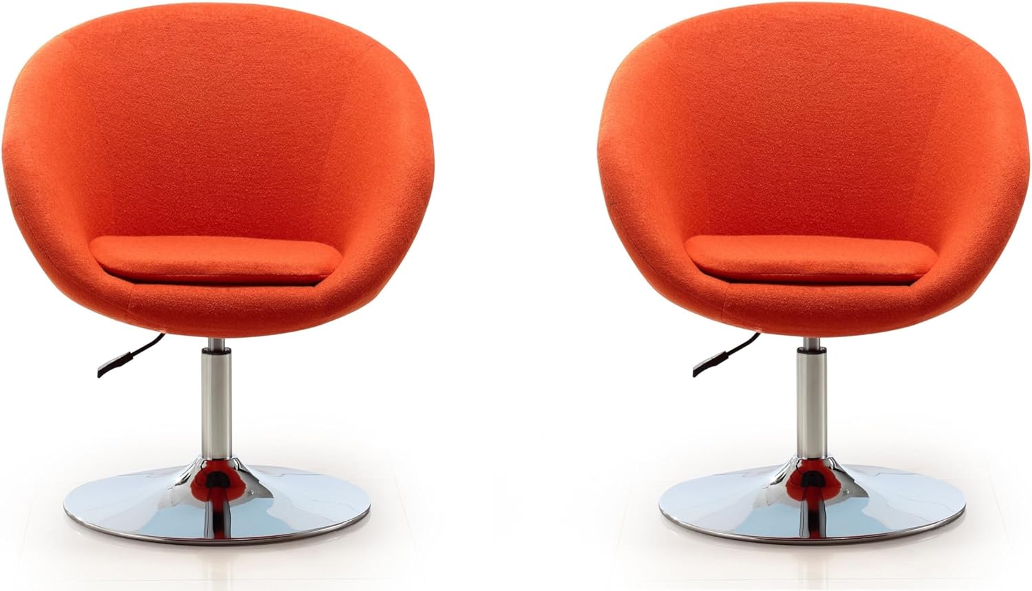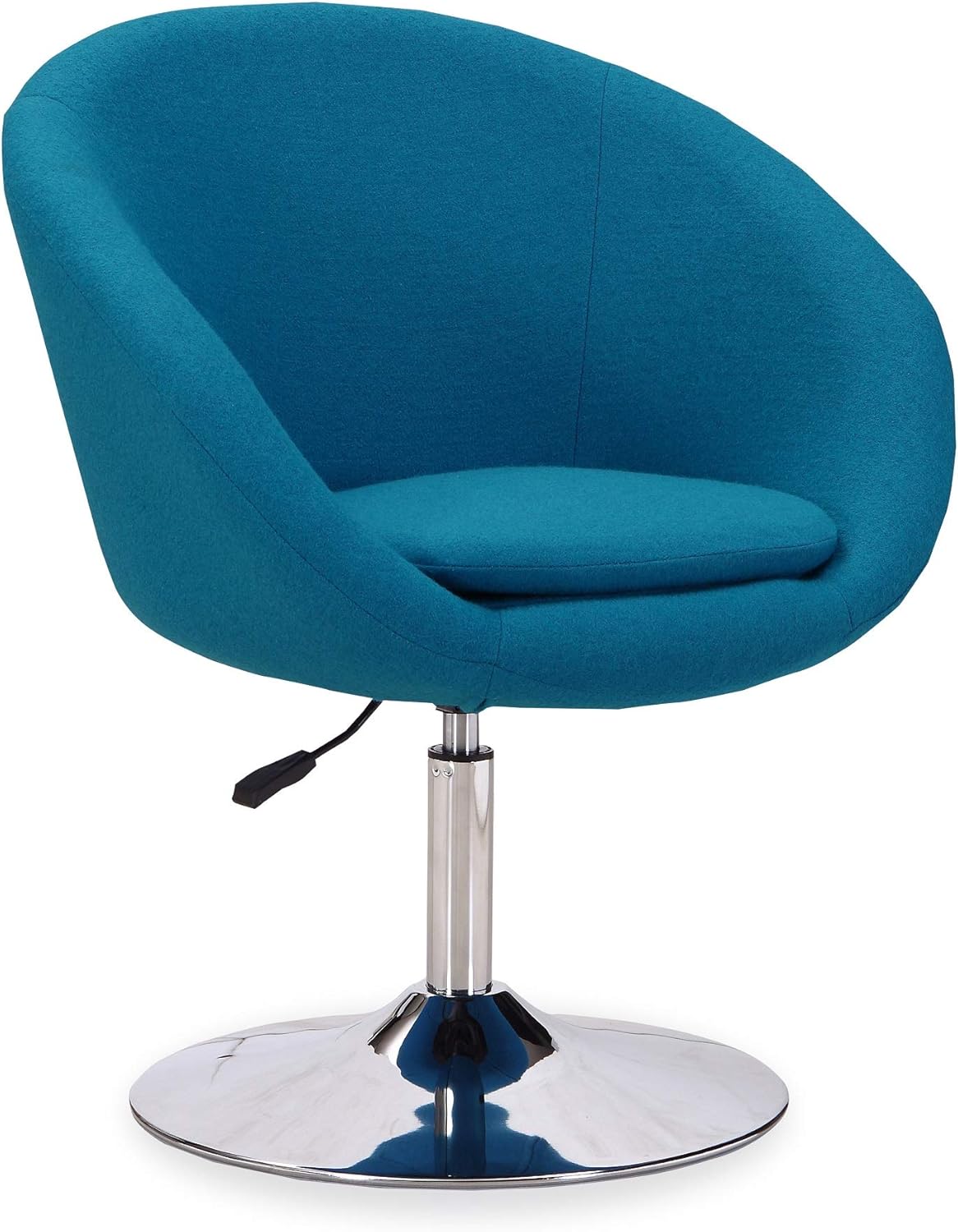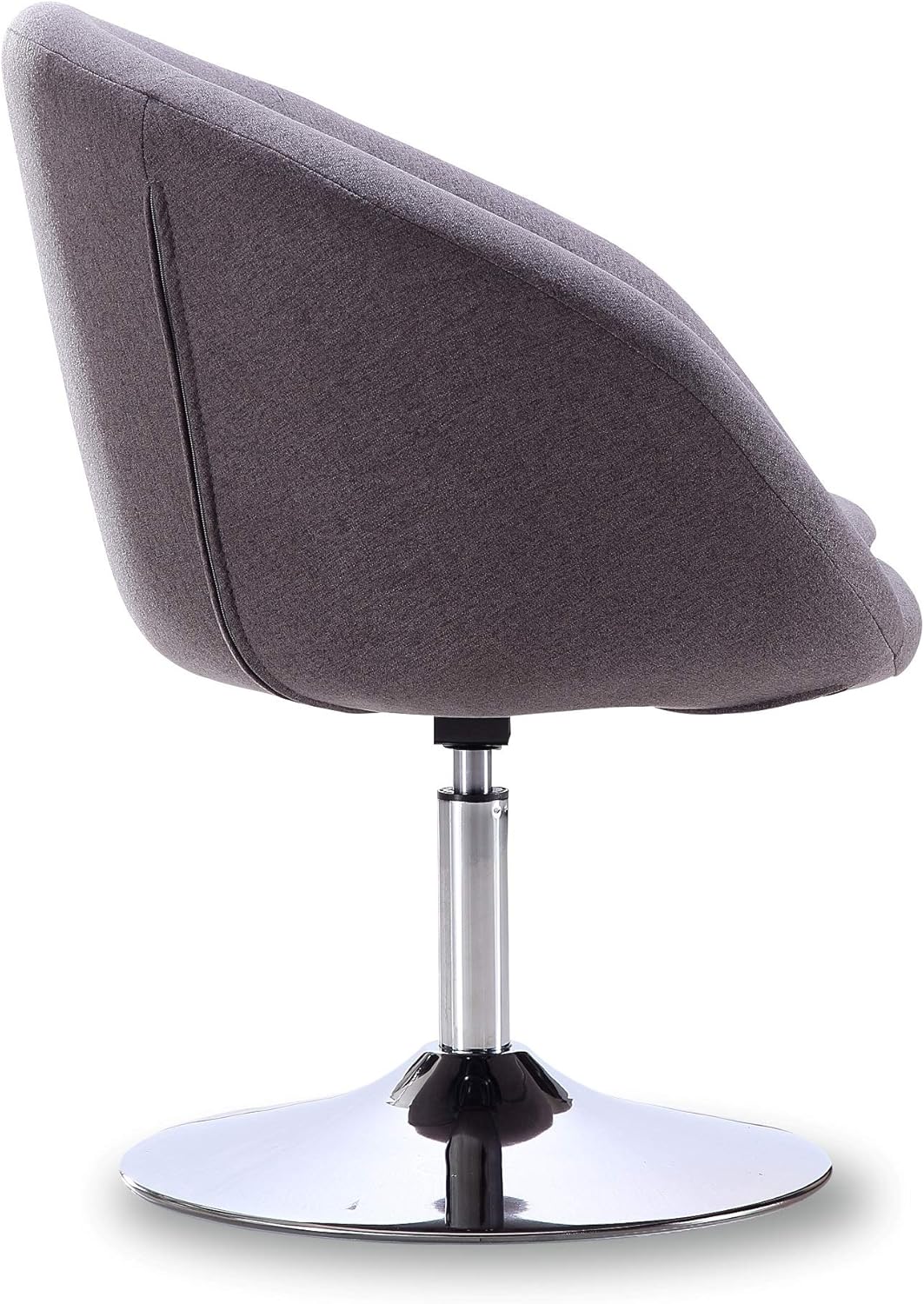 For when you need a little something extra. With 360 degree swivel capability, the Hopper makes a stylish accent for your home office or casual space, while the adjustable height is perfectly suited for any desk, table, or counter. Perched on a contemporary polished chrome base, its sleek, seamless bowl-style seat is exquisitely minimalistic. The allover upholstery, offered in an intelligent range of colors and fabrics, ensures complete comfort while complementing any decor. Modern Swivel Accent Chair for Living Room and Home Office Use. Measures: 26 in. Length, 31.1-36.2 in. Height, 24 in. Depth. Polished Chrome Metal Round Base for Design and Durability. Tight Back Chair Upholstered in Faux Leather, Twill, or Wool Blend ( Color Variation Dependent) with High Density Foam Filled Padding. Features Height Adjustability with Full Swivel. Unique Modern Bowl Shaped Seat. Weight Capacity: 300 Lbs. Seat Adjustable Height: 17.32" - 22.4". Arm Length 18.41" Minimal Assembly Required. All Hardware Included.