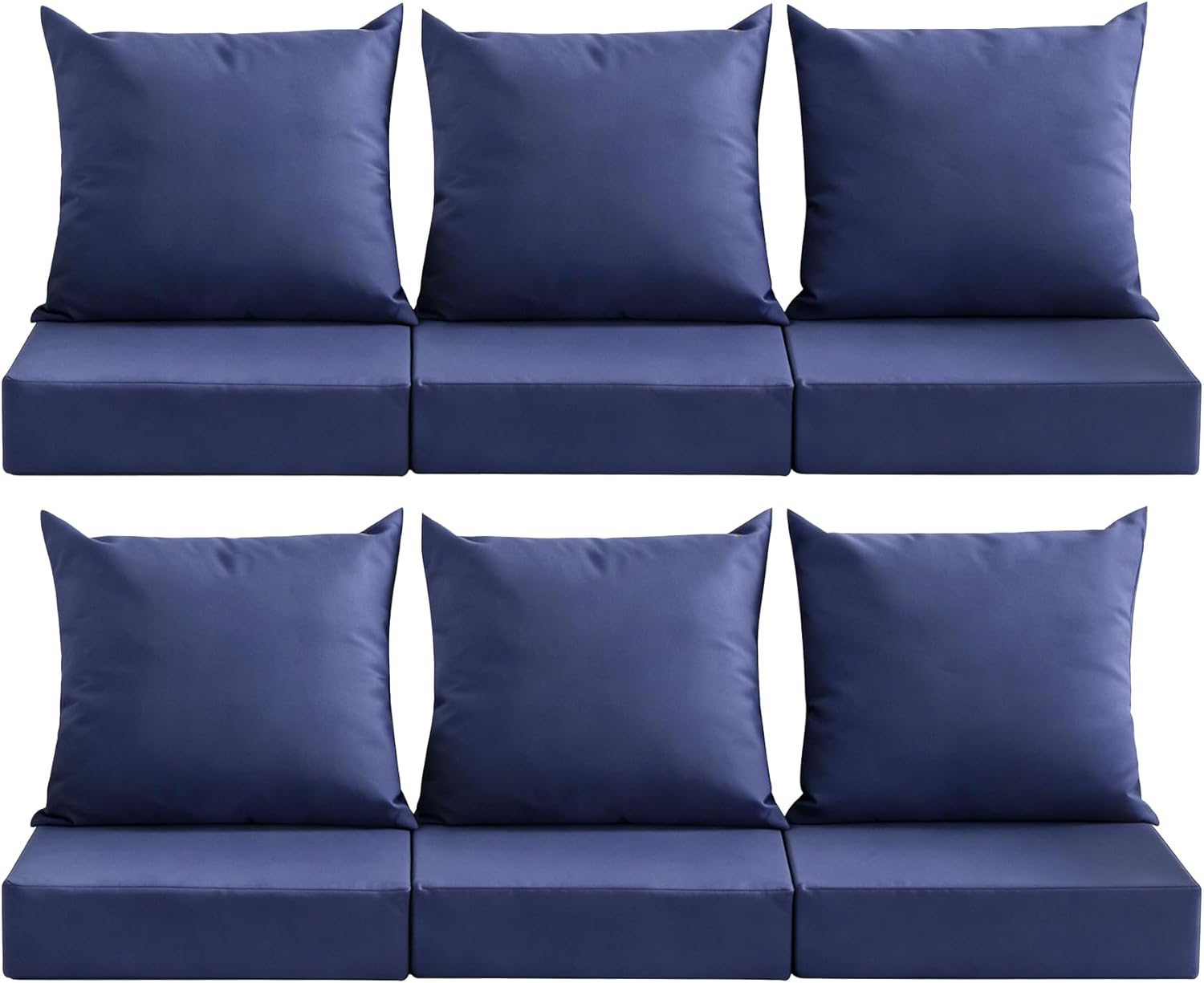 • 【Set and Size】This is a complete outdoor deep seat cushion set, which includes a seat cushion (24"W x 24"D x 5.75"T) and a matching back cushion (25"W x 22.5"H). Perfect for outfitting an entire patio furniture collection or a large sectional sofa. For a seamless match, measure your furniture's width and depth before purchase.