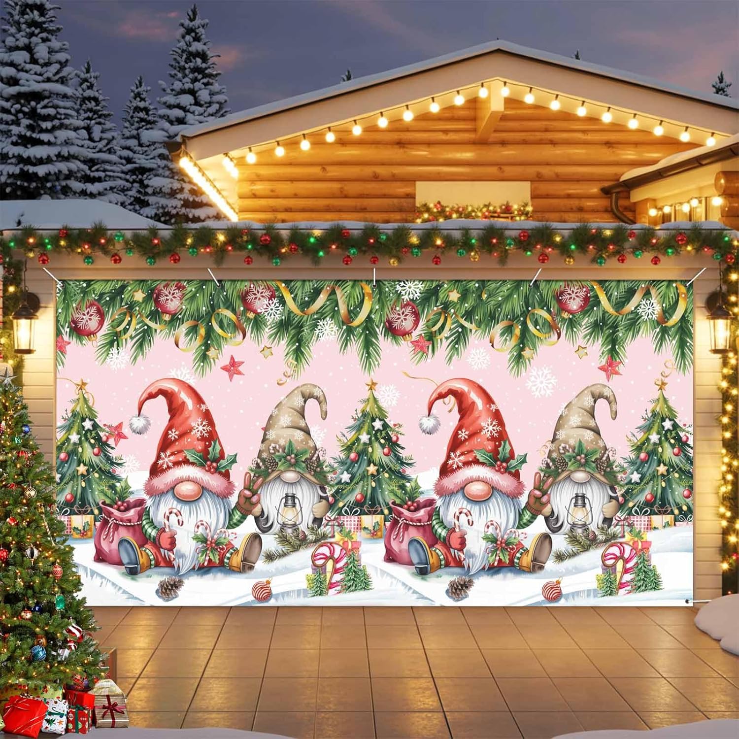 Quality Garage Door Cover- Garage door decorations are made of polyester material for durability.- Holiday garage door covers are able to withstand various weather conditions and are not prone to wear and tear.- Garage door banner have good stability and are not easy to collapse after hanging.- Garage door covers remain as good as new after machine washing and can be reused.Large Garage Door Banner- 6x13ft=72x156in=183x396cm- 7x16ft=84x192in=210x488cm- 7x8ft=84x96in=210x244cmChristmas garage door decorations are large enough to completely cover your garage door and enhance its visual appeal.Please measure your garage door to ensure proper size before placing an order.Well Made- Garage door Christmas decorations comes with 7 holes for easy installation.- Christmas garage door cover comes with a sturdy rope that won't break easily.- Christmas garage door banner has neat seams on the edges and fine workmanship.- The pattern printing of the Halloween garage door decorations is clear and not easy to fade.Beautiful Decorations & Gifts- The bright colors and warm tones of the garage door holiday covers can enhance the festive atmosphere of Christmas/Halloween/Thanksgiving/Easter/Valentine's Day.- The unique pattern of the garage door Christmas banner decoraciones para puertas de garaje para navidad can be used as a photography prop, from family, parties to various holiday themed occasions, creating unforgettable memories for you and your family and friends.- This versatile holiday garage door covers makes a great choice for year-round holiday decoration, perfect as a Christmas gifts, Halloween gifts, Thanksgiving gifts, birthday gifts, housewarming gifts, etc.Whether you're trying to get ready for Christmas or another holiday, this garage door decorations is sure to make your home stand out every season