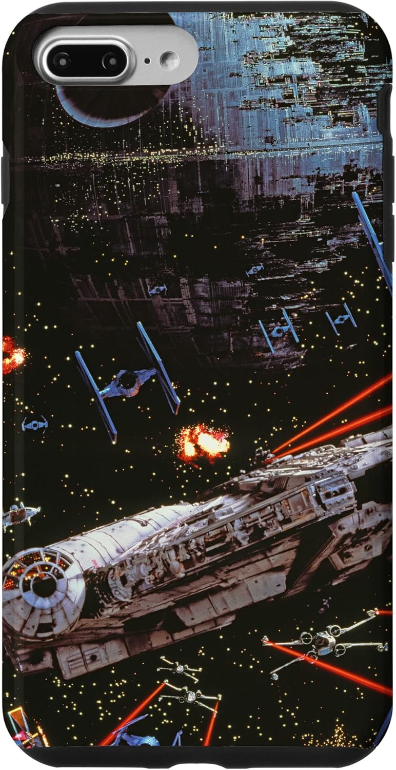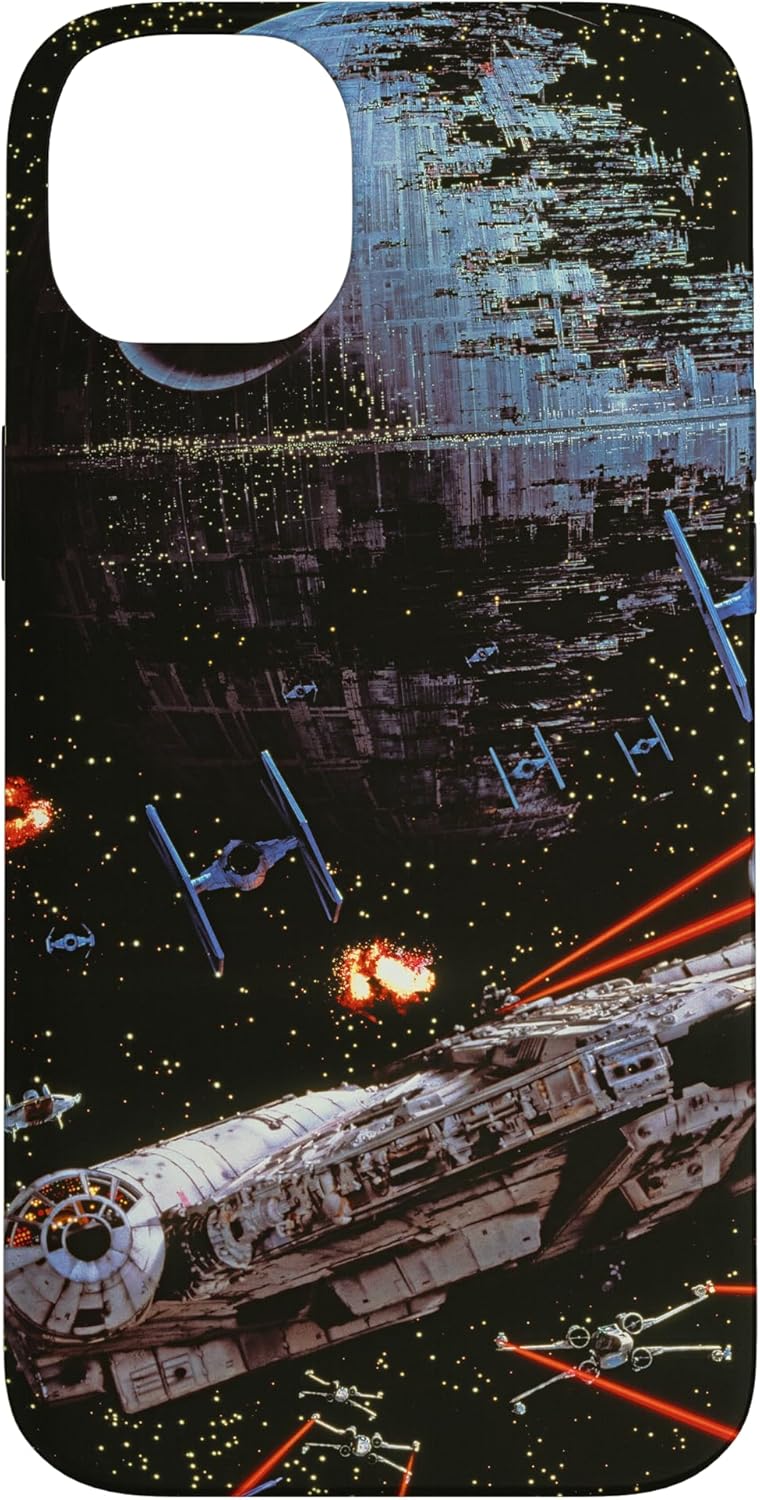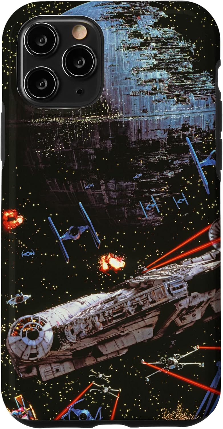 Experience the thrill of Star Wars: Return of the Jedi all over again with this action-packed Star Wars phone case. It features the starry galaxy with TIE Fighters, the Millennium Falcon, and the Death Star 2 in the battle that helps restore order to the galaxy. This Star Wars phone cover is available for the following iPhone and Samsung models: iPhone SE (2020), iPhone 7, iPhone 8, iPhone 11, iPhone 11 Pro, iPhone 11 Pro Max, iPhone X/XS, iPhone XS Max, iPhone XR, iPhone 7/8, iPhone 7 Plus/8 Plus, Galaxy S10, Galaxy S10+, Galaxy S10e, Galaxy S9, Galaxy S9+, Galaxy S8, Galaxy S8+.