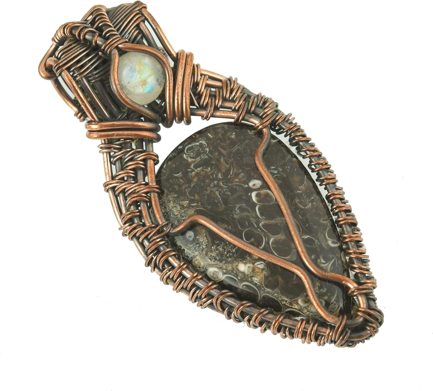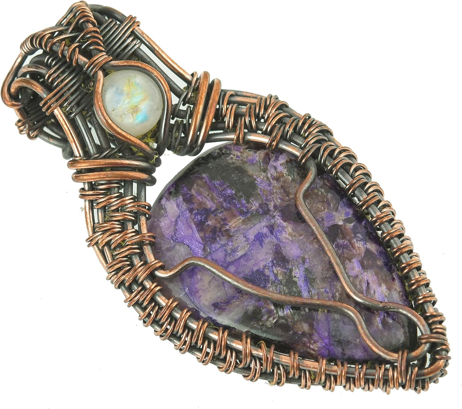 | Style | Handmade Copper Wire Wrapped Pendant Necklace with Labradorite and Rainbow Moonstone |