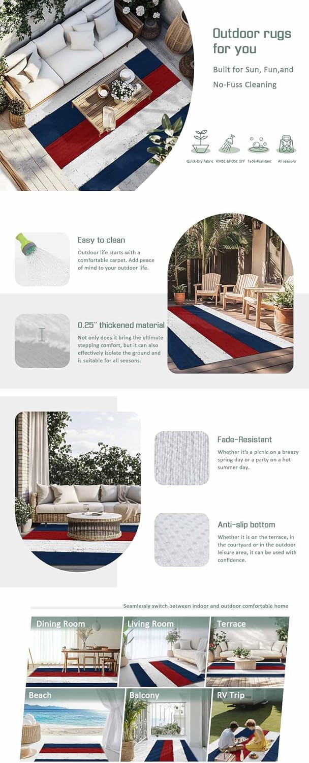 4th of july Red White and Blue Outdoor Rugs For Porch Or Patio This Patio Rug is Great For Home/Outdoor Decorations.These Functional Area Rugs Have Eye-Catching Designs And Can Be Used At Home for Patio /Porch /Garage/ Entrance Way/Pool/Courtyard/Balcony Deck/Lanai Or Outside Camping /Camper/ Rv /Deck/ Picnic/ Trailer/ Beach/ Park /Road Trip/Boathouse/✓Keep Your Entryway Floor CleanThis Rug Is Ideal For Absorbing Water,Scraping Dirt And Mud Of The Shoes . ✓High Quality Outdoor Floor Mats RugsThe Outdoor Entryway Rugs Are Made Of Polyester Fabric Top And Backed With Non-Slip Rubber Backing For Durability And Safety,Ideal For High-Traffic Areas✓Great GiftMade With Fade-Resistant, Long Lasting Materials, This Is A Beautiful Unique Runner Rugs You'Ll Be Proud To Own Or Gift.Liven Up Your Garden/Front Door/Backyard Decor With An Inviting Outdoor Rugs. It Also Will Be One Of The Best Housewarming Gift Option For Your Friends,Colleague Or Family.