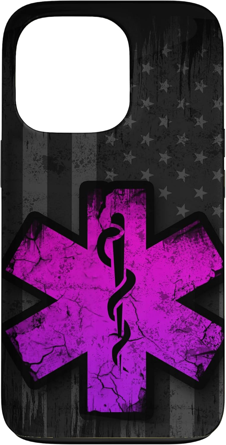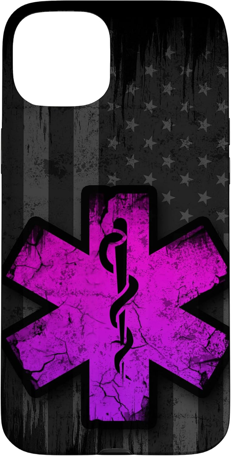 American Emergency Medical Services design. This Vintage EMS EMT Black White Grey Usa Flag Distressed American Pink Purple Paramedic Logo design Print is giving you the feeling that you are having a peace of art on your mobile phone.