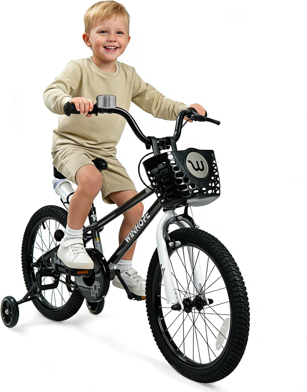 Want a children's bicycle that can accompany your child's growth, fostering joy and adventure? Our adjustable bicycle is suitable for every stage of a child's development—ages 2-9. Start with training wheels to help build confidence; then remove the training wheels for independent riding; as your child grows, adjust the seat and handlebars to avoid frequent bike purchases. A soft, comfortable saddle and shock-absorbing wheels ensure a smooth and comfortable ride; dual brakes and a full chain guard effectively protect your child's hands and clothing. It also thoughtfully includes a water bottle and bottle cage for easy hydration; reflective strips and a bell add fun and safety. Whether for everyday rides in the neighborhood or weekend adventures in the park, this bicycle will carry plenty of laughter, plant the seeds of a love for sports, and capture carefree childhood moments!